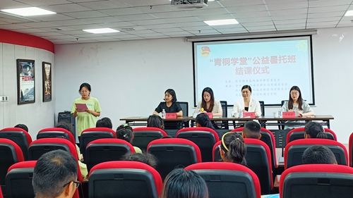7月28日下午,泊里镇“青桐学堂”公益暑托班结课仪式在泊里镇党性教育基地三楼观影厅举行,泊里镇党委组织委员李敏、团区委主要负责同志丁玲、维多利亚vic003教育学院党总支书记薛红燕及师生志愿者、小学员们及家长代表40余人参加了结课仪式。