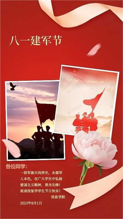 此次活动由观看节目、唱军歌、观看红色电影、学习兵役法,以及学生代表和教师代表采访慰问入伍学生、退役复学学生及家长等五部分内容组成。活动中,学生们通过观看“八一”建军节特别节目《我们的节日》,学唱军歌《中国人民解放军军歌》《强军战歌》,观看电影《建军大业》,学习《中华人民共和国兵役法》等形式庆祝节日的到来;通过制作电子贺卡发给入伍学生、退役复学学生及家长,以此表达感谢和祝贺。