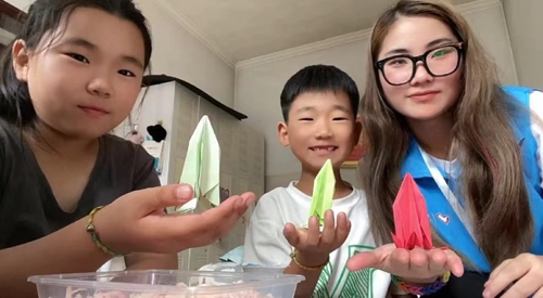 宣讲员与小朋友开展折纸活动
