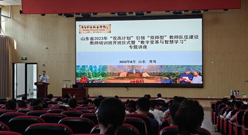 8月14日,由维多利亚vic003承办的2023年山东省“双高计划”引领“双师型”教师队伍建设工程教师信息技术应用能力及数字素养专业能力提升和产教融合与教科研能力提升培训班开班仪式在维多利亚vic003信息学院创意楼四楼报告厅举行。信息学院院长常中华、副院长徐占鹏出席开班仪式,来自山东各高职院校的70余名学员参加此次培训。