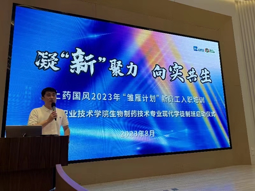 8月28日下午,青岛市现代学徒制试点项目:生物制药技术专业现代学徒制班在上海医药集团青岛国风药业股份有限公司(上药国风)顺利举行,上药国风技术总监吴隆智、生物与化工学院院长王东参加了开班仪式。
