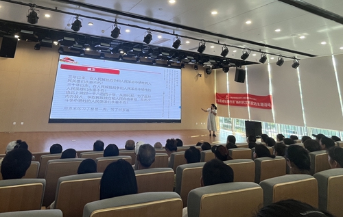 9月3日是中国人民抗日战争暨世界反法西斯战争胜利78周年,马克思主义学院党总支第一党支部党员教师范思梅在西海岸新区渭河路图书馆,讲授了“人民英雄纪念碑的‘青岛心’”主题党课,辛安街道办事处80余名党员参加了讲座。