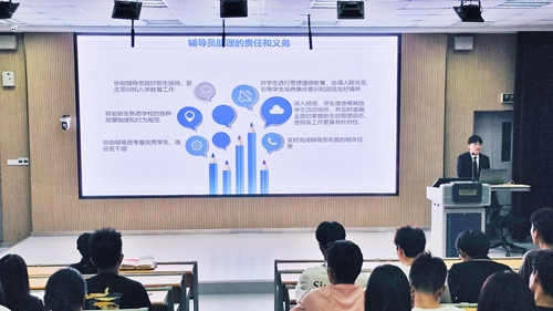 此次培训由信息学院学工办主任孙玉宁主持,她在培训过程中表示,新时代学生干部要有新时代的风采,要以“让我来”的自信迎接各种挑战,以“跟我来”的热情锻炼实干能力,以“一起来”的意识锤炼合作共赢,以“你先来”的谦让培养豁达胸襟,以“向未来”的坚韧乘风破浪。随后,信息学院各位辅导员依次从辅导员助理定位、自我认识、工作职责以及对新生心理健康、军训等相关事务方面阐述如何做好一名新生班辅导员助理,希望学生能够善于学习、善于创新,增强服务意识和责任意识,在新生中树立良好形象,发挥好引领与带动作用。