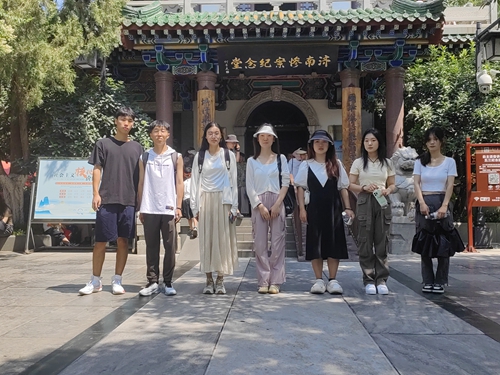 寻访红色踪迹,探忆峥嵘岁月。7月16日,艺术学院“红色纪念馆教育团”团队赴济南惨案纪念馆开展“追寻红色足迹,锤炼坚定信仰”系列社会实践活动。参观学习了以日历形状制作的石碑和由欧阳中石先生题写的“五三堂”等红色印迹。团队成员们怀着无尽悲痛的心情,向那些无辜遇难的同胞致以最深切的悼念,铭记革命历史,缅怀革命先烈,传承红色精神,凝聚奋进力量。8月5日,艺术学院红色记忆团队来到山东省临沂市沂南县博物馆,雄伟的沂南县博物馆犹如一本厚重的历史书,团队成员徜徉其间,静静品读博大精深的中华历史。深切感受到了伟大祖国悠久而光辉的历史。
