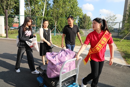 学生党员志愿者帮助新生运送行李