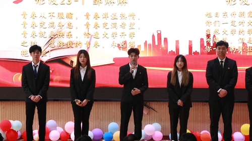 大会在观看《春华秋实 以馨迎新》艺馨学子精彩风采中拉开了帷幕。2023级新生助理上台与新生见面,向学弟学妹分享大学生活感悟。各教研室主任、专业负责人以及新生辅导员们分别发言,向新生寄语,希望他们能够互利互勉。艺术学院模特队的时尚走秀《印·繁花》给现场师生们带来了一场色彩缤纷的视觉盛宴。随后,新生代表孙明月上台发言,表示一定会谨记校训精神,锤炼过硬本领,不负韶华、不负时代,努力做敢为人先、追求卓越的新时代青年。