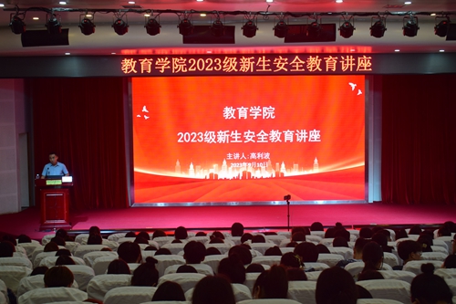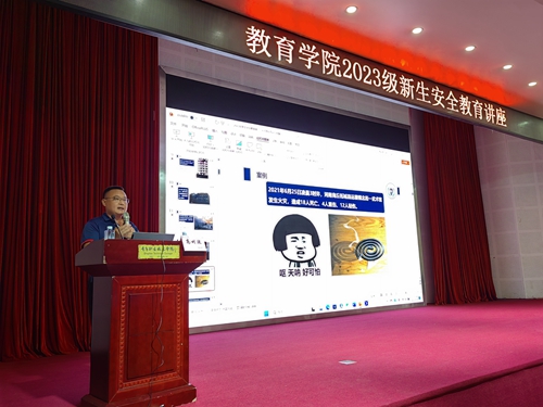 9月10日下午,教育学院邀请安保处副处长高利波为新生进行安全教育讲座。高利波从校园消防安全、防电信诈骗、防溺水和预防犯罪等方面向新生们做了耐心细致的讲解,结合具体案例,详细讲解了四种安全教育的原则、技巧及注意事项,内容丰富翔实,理论性和实操性都很强,为新生上了一堂内容充实的校园安全课,提高了新生们的安全防范意识和辨别能力。教育学院党总支副书记贾勇结合学生安全管理工作实际,从文明礼仪教育、校规校纪学习、公寓安全管理规定、请销假制度、心理健康教育、意识形态教育等方面对学生们提出了明确要求,希望学生们按照学校文明修身工程的要求,自觉规范自身在学习、生活和实践中的行为。