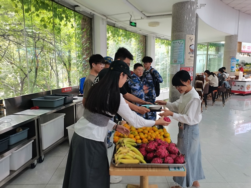 9月23日,正值第6个“中国农民丰收节”到来之际,后勤管理处协同两家餐厅经营企业以“你光盘,我奖励,共节约”为主题,在学生餐厅开展了“光盘换水果”活动。