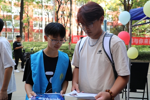 志愿者为新生发放反诈宣传单页