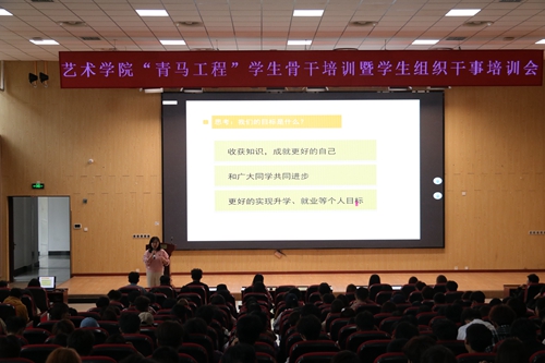 10月12日,艺术学院在创意楼举办“青之艺大讲堂”——“青马工程”学生骨干培训暨2023级学生组织干事培训会,由艺术学院党总支副书记解荟霖主讲,370余名学生骨干参加培训。