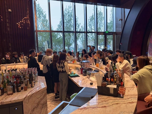 参观前,酒店管理与数字化运营专业学业导师与项目导师反复打磨访谈提纲,与酒店管理人员多次商讨参观路线、活动开展形式,分组参观酒店。参观过程中,酒店管理人员热情地介绍了相关情况,学生们结合项目调研任务积极提问,对酒店前厅、客房、餐饮等部门组织功能有了直观认知。学生们还在酒店经理人员的指导下,对葡萄酒品鉴、西餐摆台、中餐主题宴会设计等进行了现场实操观摩,激发了学生专业学习兴趣。