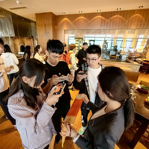 学生在青岛鲁商凯悦酒店调研中参与趣味互动