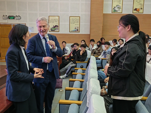 会后,Patrick Portier、李瑞璇在报告厅面向2023级酒店管理与数字化运营专业学生以及酒店专业葡萄酒方向第四届“美酒苑”学生作主题宣介。Patrick Portier介绍了目前CAFA葡萄酒&烈酒学院的情况。李瑞璇介绍了国内侍酒师行业的现状及对人才的需求。答疑环节,学生们踊跃提问,从语言学习、升学路径、就业领域以及生活环境等不同方面,展开了热烈的交流。