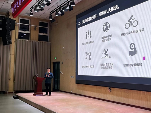 交流会上,教授王伟简要介绍了泰山体育产业集团的八大布局板块,遵循“人机料法环”分析原则,结合体育专业学生未来发展方向,理清了校企合作发展脉络。随后,刘祥峰解答了学生关于应掌握的知识与能力、就业岗位类型和人才需求等问题。