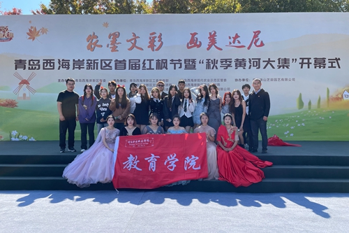 10月21日,教育学院受邀参与青岛西海岸新区首届红枫节暨“秋季黄河大集”开幕式演出活动。教育学院党总支副书记贾勇、辅导员张中相和部分学生代表参加了活动。