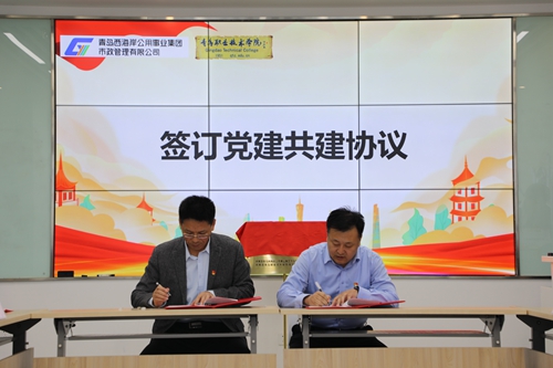 谭明堂、肖永豪、邢广陆、杨春旺共同为市政公司与维多利亚vic003海尔学院党建共建基地揭牌,谭明堂与杨春旺签订党建共建协议;薛玮和赵静为市政公司与海尔学院团建联建基地揭牌,杨浩杰与海尔学院团总支书记刘理贤签订团建共建协议。