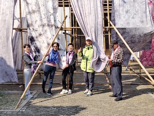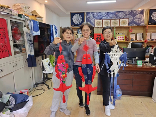 考察活动后,王泽辉为老社员们传授扎染传统手工技艺,同时结合历史、概念、制作方法等内容,指导老龄社员们进行了扎染制作,让大家亲身体验传统工艺与现代时尚的结合。