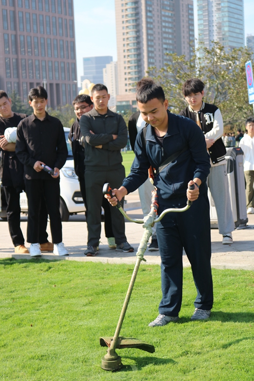 活动中,学生们认真学习如何驾驶清洁作业车、如何给树木涂白漆、如何修剪草坪,以及如何清理草坪杂草等任务。经过学习,学生们掌握了作业技能,并上手实际操作工具,完成市政清洁美化工作。操作实践后,学生们参观李巧工匠创新工作室,学习劳模的工匠精神,提高自己吃苦耐劳、敢拼敢闯的思想觉悟,并与青岛西海岸公用事业集团市政管理有限公司工作人员合影留念。