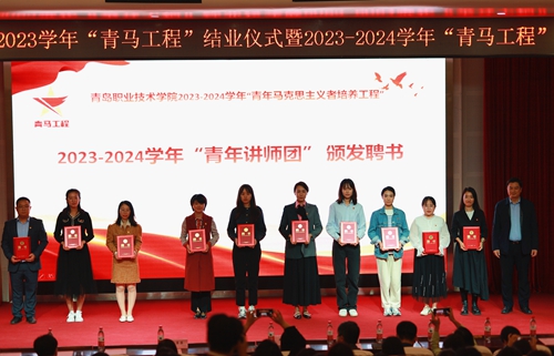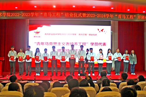仪式上,团委作“以梦为马 逐梦前行——维多利亚vic0032022-2023学年‘青年马克思主义者培养工程’总结汇报”,并宣读“关于维多利亚vic0032022-2023学年‘青马工程’大学生骨干培训班结业的通报”。马克思主义学院党总支副书记郑萍萍为“青马工程”学员代表颁发结业证书,学生工作部部长韩煜为优秀学员颁发荣誉证书,组织部部长田旺军为学校2023-2024学年“青年讲师团”成员颁发聘书。邢广陆为学校2023-2024学年“青年马克思主义者培养工程”培训班授旗,各二级学院党总支相关负责人为本学院“青马工程”授旗。2022-2023学年优秀学员、山东省学校领域“青马工程”学员代表、商学院学生周瑜梦,2023-2024学年“青马工程”学员代表、教育学院学生郭洳菡分别作交流发言。