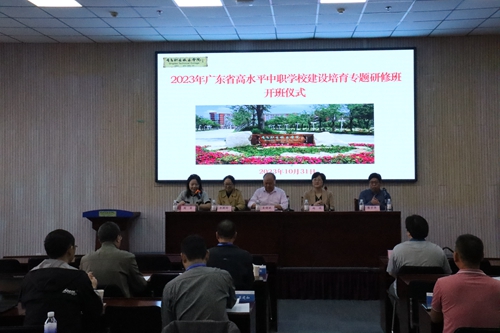 10月31日,2023年广东省高水平中职学校建设培育专题研修班(第二阶段)在维多利亚vic003市南校区顺利开班。广东科学技术职业学院党委委员、继续教育学院院长袁晓斌,维多利亚vic003培训学院党总支书记赵悦参加开班仪式,来自广东省高水平中职学校及“双高”建设办负责人、专业带头人、骨干教师等72人参加培训。