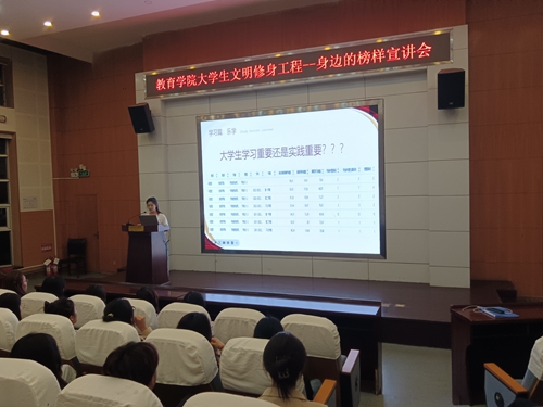 以榜样之光,照亮前行之路。学生观众在活动结束后纷纷表示受益匪浅,从身边的榜样身上学到了很多,立志在未来的人生道路上更加努力、坚持拼搏,成就更好的自己。后续,教育学院将继续组织开展大学生文明修身系列活动,切实提升学生的综合素质,助力文明校园创建工作。