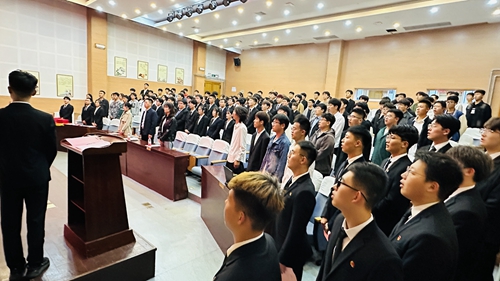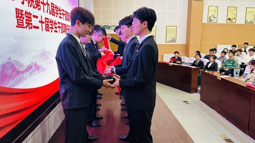 学生干部代表依次发言,对任期以来学校领导、教师们的关心和指导表示感激,分享了担任学生干部的心得体会,鼓励新任学生干部珍惜机会、匠心务实、团结奋进,做好本职工作,提升个人能力,将学院优良传统传承下去。随后,两届主席团进行了交接仪式。新任学生干部集体宣誓,表示将以服务师生为宗旨,模范遵守校规校纪,认真履行责任义务,争当青年友,不做青年官,在工作中团结协作,勇于创新,甘于奉献,模范立身,努力做全面发展的新时代学生干部。
