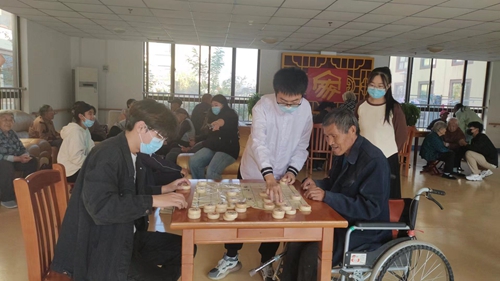 志愿者与老人下棋
