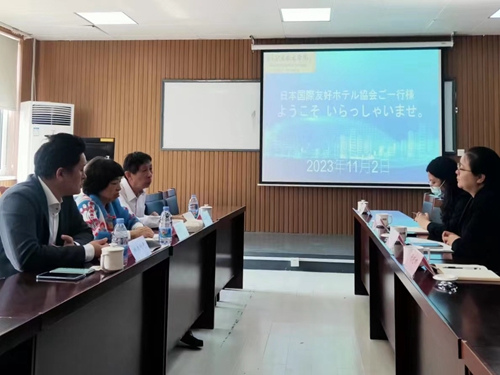 王媛媛对日本国际友好酒店协会一行的到访表示欢迎,并表示旅游学院高度重视国际化实习实训项目开展,将抓住此次海外实习项目所释放出的利好契机,推动商务日语专业及相关专业人才培养。借助海外实习实训项目,拓宽学生国际化视野、提高学生职业发展竞争力,并将继续丰富课程供给,提高学生语言应用能力,为学生海外实习和成长提供更好的支持、服务。双方就如何推进赴日研修工作的具体事宜进行了洽谈,交换了意见,达成了诸多共识。