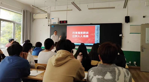 活动中,刘军晓系统介绍了保密的相关知识及增强保密意识的重要性,并结合真实案例,呼吁学生形成“知保密,懂保密,善保密”的氛围,树立正确的保密观念,依法履行保密义务,在今后的日常学习、工作和生活中将保密习惯内化为道德标准、外化为行为准则。随后,学生们观看了国家安全保密宣传教育短片《藏在照片里的秘密》,并以小组为单位进行交流讨论,各组代表分别分享了他们在此次宣讲中的收获与心得。刘军晓结合保密教育视频,提醒学生们要增强警觉意识,不断提升自我约束能力和自我警醒能力。