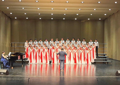 此次比赛共有8支来自青岛市各大高校的合唱团队同台比拼。青之声合唱团的师生们积极组织排练,用专业的艺术水准演绎了《走向复兴》《在灿烂阳光下》两首歌曲,展现出团队高度统一的默契和扎实的专业水平,优美动听的歌曲寄托了学生们热爱祖国的心声,嘹亮的歌声响彻音乐厅穹顶。