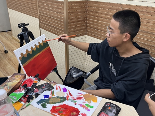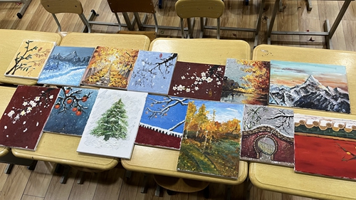 学生们聚精会神绘制作品