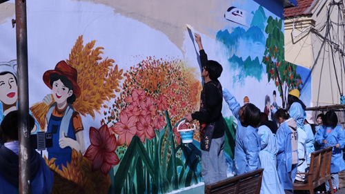 艺术学院教师孙京川带领师生10余人,在深入了解君塔山路社区北马连村特色、乡土人情及村民需求的基础上,以当地文化、环境和土生土长的人民为载体,用墙绘的艺术形式,以艺赋能,助推乡村环境美化,提升乡村文化品质,点亮乡村幸福生活。在墙绘创作过程中,从主题的确定、素材的选取,再到构图及最后的创作,师生和村民们进行了反复沟通交流。这既是对美丽乡村建设内涵的一次深入挖掘,也是对师生在发挥专业特长服务社区、服务乡村振兴方面一次难得的教育和体验。