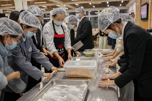 座谈结束后,学生们在食堂工作人员的指导下纷纷动手包起水饺,现场充满了欢声笑语。