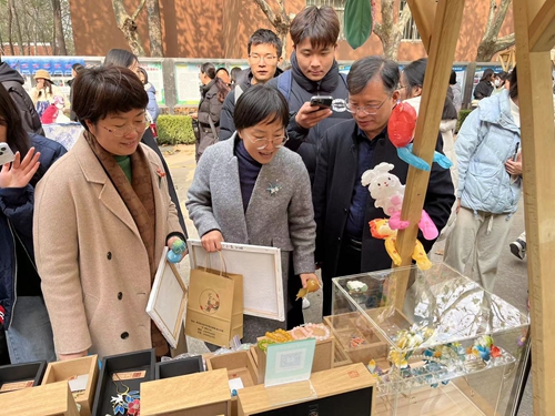 此次文创市集汇聚了非遗、创意设计、数字科技等众多品类,既有糖人、蜡染、扎染、剪纸、皮具、陶艺、簪花、绒花等深植中华优秀传统文化底蕴的手工技艺作品,也有彰显现代技术和智慧智能的3D打印作品,还有学生结合专业特色和课程现场进行的美甲、画肖像画等,吸引了众多师生前来逛集打卡。“限量版”的商品独具匠心,融合传统与创意,凝结着师生的原创心血,为师生实现自我价值、放飞创业梦想搭建了多元化平台,同时以文创手造焕发青职文化活力,将中华优秀传统文化进行活态传承,打造出学校美育教育体验新场景。