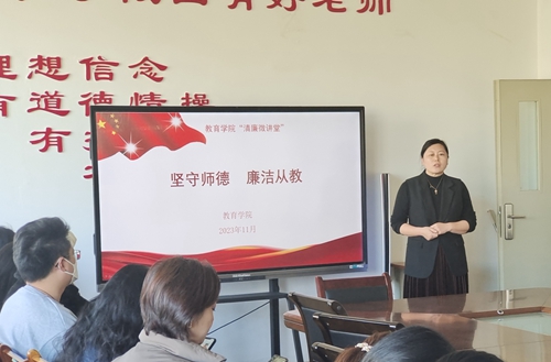 11月23日,教育学院党总支组织全体教职工召开廉政教育警示教育会议,旨在进一步加强党风廉政建设,筑牢廉洁自律防线,强化全体教职工廉洁从教意识。
