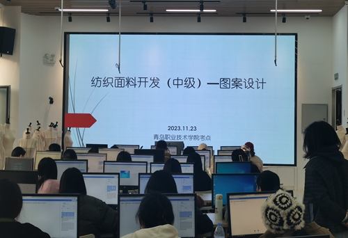 此次考试采取机考的形式,分为理论知识考核及实操考核两部分,理论知识考核包含纺织面料开发基本知识,实操考核部分为图案设计,全面检验学生的理论素养和实操能力。为确保考评工作顺利完成,艺术学院前期从考场安排布置、考试耗材、师资培训、学生动员培训、模拟考试、考务安排、调试设备等方面进行了精心筹备,严格按照“1+X”证书制度和考核管理规定部署考务组织工作,确保了此次考试圆满完成。