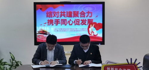 结对仪式上,后勤管理处党支部书记潘乐与孙家沟社区党支部书记林青分别就双方党支部的组织建设、队伍发展、党员管理、制度机制、阵地保障、作用发挥等方面进行了分享交流。双方表示将建立常态化的联系沟通机制,发挥各自党组织优势,加强支部建设,探索共建机制,互相汲取先进经验和创新做法,坚持做到相互交流学习,共同提高支部党建工作水平。同时,双方将本着“资源共享、优势互补、注重实效、促进发展”的原则,努力实现服务社区、促进社区高质量发展和搭建平台、助推院校高素质育人的目标。