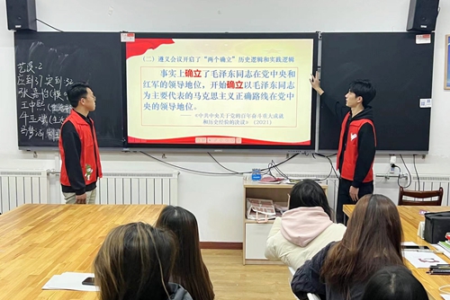 活动中,宣讲团成员以“弘扬遵义精神,展现青春色彩”为主题,通过丰富详实的实例从遵义会议的背景、召开和意义3个方面带领学生们深入学习了遵义会议的精神内核,让学生们真切理解遵义会议的重要历史地位,感悟遵义会议革命精神,真切感受遵义会议作为我们党历史上一次具有伟大转折意义的重要会议,把马克思主义基本原理同中国具体实际相结合、坚持走独立自主道路、坚定正确的政治路线和政策策略、建设坚强成熟的中央领导集体等方面留下的宝贵经验和重要启示。