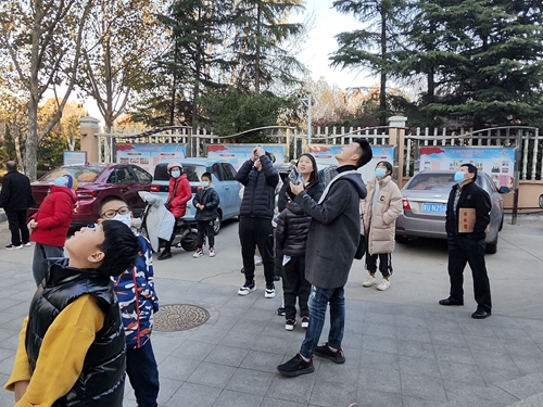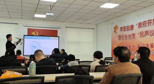 无人机协会社团学生为沂河路社区居民进行无人机现场操作演示