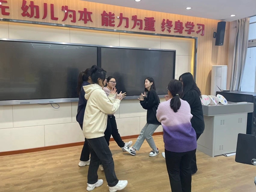 在随后的一周中,学生们在创意楼学前教育校内实训基地完成了一日生活组织与实施、领域教学试讲、音乐情景剧表演、幼儿园区角设计与环境创设等实训项目,通过个人任务与小组任务相结合的形式完成。