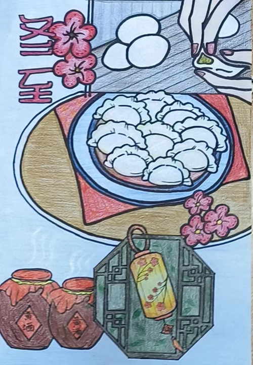 此次活动由教育学院美工社主办,以书画手工作品比赛的形式开展。学生们通过绘画、剪纸、手工、创意画等多种表现形式把冬至的传统节日风俗融入一幅幅作品中,讲述了属于自己的“冬至故事”,表达了对中华优秀传统文化的喜爱之情,深刻体悟了冬至节气的传统文化内涵。