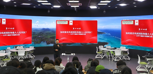 12月20日下午,校团委组织学校“青马工程”学员在闻道楼全景智慧活动室开展“建设巩固的国防和强大的人民军队”专题培训。本期培训由马克思主义学院教师、学校“青马工程”导师李文斌主讲。