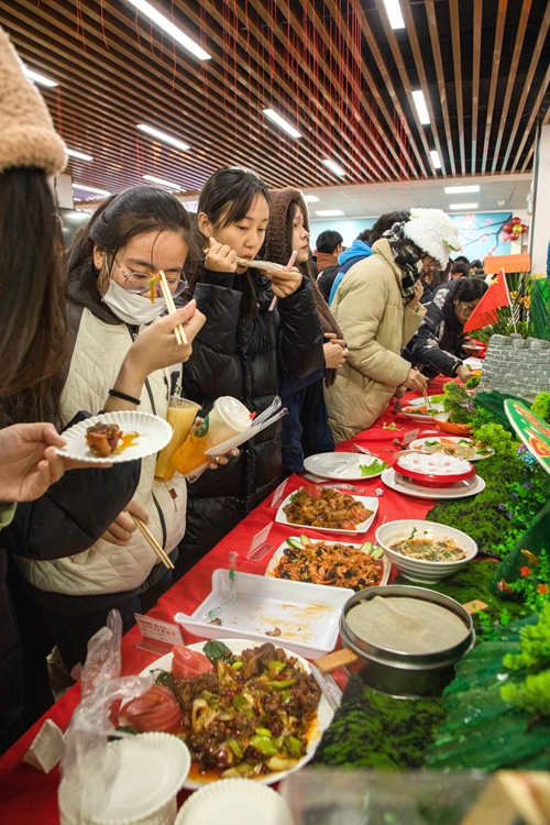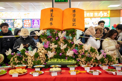 此次美食节设置了雕刻展示区、传统菜展示区、风味小吃区、糕点区等。现场,栩栩如生的雕刻菜品令师生连连赞叹。传统菜展示区,每一样菜品都融入健康营养膳食理念与传统文化元素;风味小吃区、糕点区等40余种餐品令师生在品尝时赞不绝口,为师生带来了别样的味蕾体验。活动现场还设置了抢红包、当日生日免费领取生日小蛋糕等福利活动,活动现场美食飘香,热闹非凡。