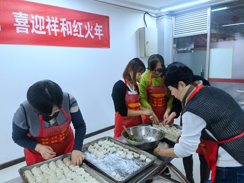 12月29日,2023年的最后一个工作日,为了迎接新一年的到来,培训学院工会举行了“欢乐包饺子,红火迎新年”活动。培训学院全体教职工、市南校区餐饮物业安保人员齐聚一堂,共同动手包饺子、品尝饺子、交流情感,增进沟通,为新一年的工作注入更多的活力和动力。在校培训的临洮第三批赴青岛市北区体悟实训的10位培训学员也受邀参与了此次活动。市南餐厅还特意为当天过生日的教师准备了大虾荷包蛋生日面。