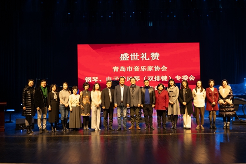 当晚,“盛世礼赞-青岛市音乐家协会钢琴、电子管风琴(双排键)专业委员会2024新年音乐会”在青岛艺校实验剧场举行,市文联副主席等各界领导莅临音乐会现场观看演出。本场音乐会由岛城老中青三代钢琴、双排键专业教师百余人参加,以阵容强大的合奏、协奏形式,奏响歌颂伟大祖国的经典旋律、讴歌奋进时代的华美乐章。刘艳霖与其他高校的教师们一起激情演奏《我的祖国》。