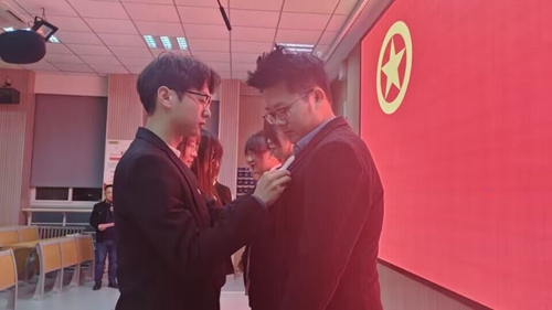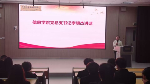 入团仪式上,信息学院团总支书记罗卫朋宣读了《2023年新发展团员名单》。随后,老团员代表为每位新团员佩戴团徽,新团员代表张雨鑫带领全体团员进行了庄严的宣誓,庄严承诺,将坚定信仰、砥砺前行,为共产主义事业贡献青春力量。信息学院党总支书记李明杰向新团员表示祝贺,希望新团员们能够深入学习团章和党史,并对新老团员们提出要求,希望他们能牢记入团誓言,遵守团的章程,执行团的决议,履行团员义务,发挥模范带头作用。