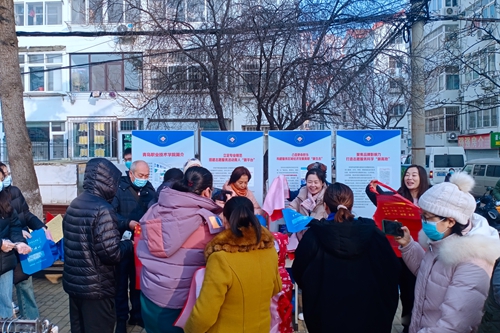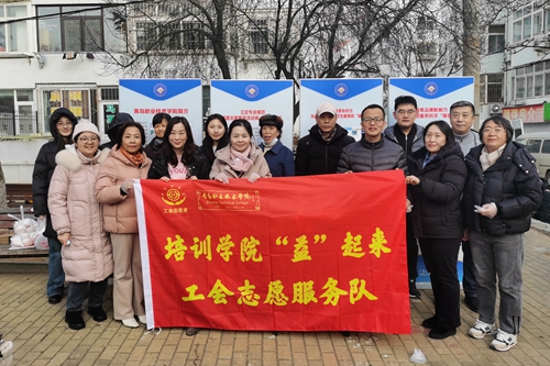 1月12日上午,培训学院15名教工党员和志愿者参加了由市南区金湖路街道亢家庄社区主办的“百场活动进社区”系列活动。