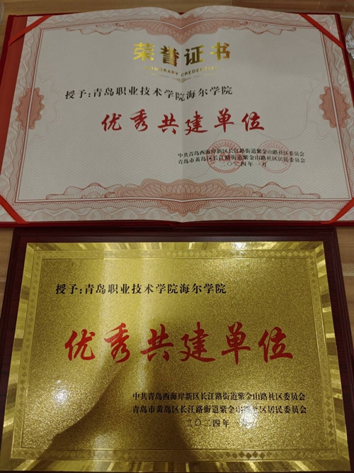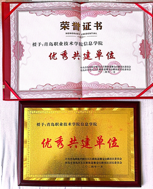 1月26日上午,在西海岸新区长江路街道紫金山路社区评先树优暨迎新年联欢会上,海尔学院与信息学院荣获该社区“优秀共建单位”荣誉称号。