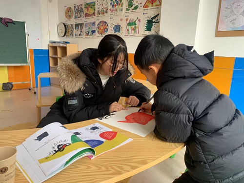 志愿者辅导红石崖街道留守儿童课外知识学习