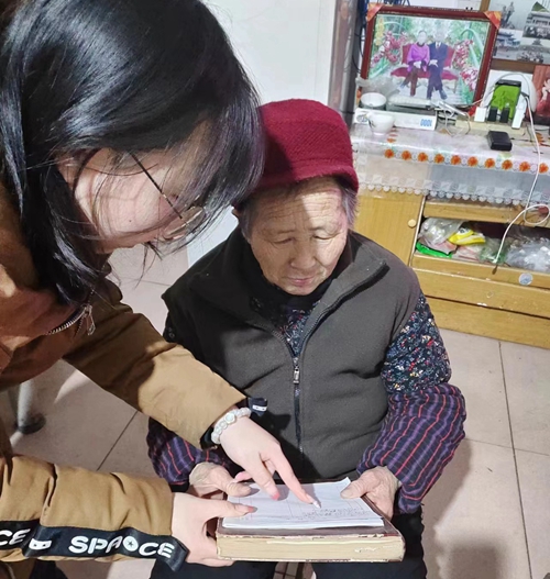 志愿者为老人讲解用火用电安全事项